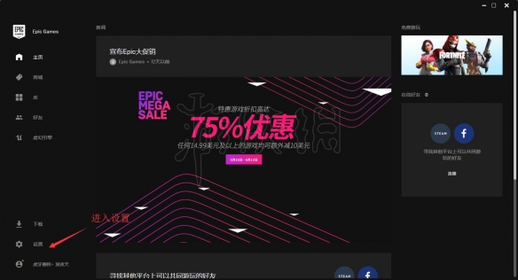 1.打开加速器加速Ep平台,然后进入Ep平台客户端,左下角设置: