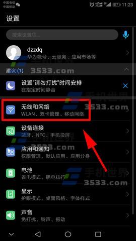 1)打开手机点击进入【设置】菜单,来到菜单界面后再点击【无线和网络】选项。(如下图)