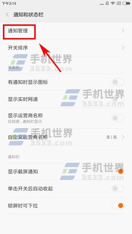 1)打开手机设置菜单点击进入到设置界面后再点击【通知和状态栏】,然后再点击【通知管理】。(如下图)