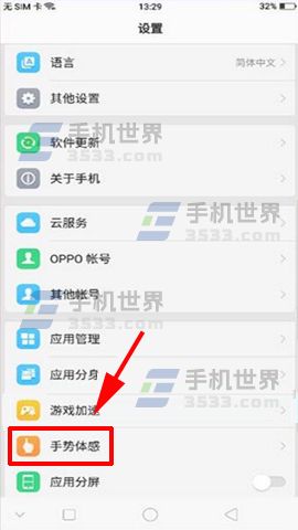1)打开手机【设置】菜单,进入设置菜单后点击【手势体感】选项。(如下图)