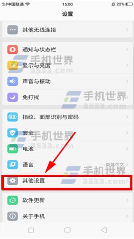 1)打开手机点击进入【设置】功能,进入到设置菜单后再点击【其他设置】选项。(如下图)