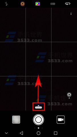 1)打开手机的【相机】应用,进入相机界面后可以看到快门按钮上方有个白色的滑块,按住它往上拉。(如下图)