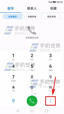 1)打开手机的【拨号】应用,进入拨号界面后点击右下角的三个点状的菜单按钮。(如下图)