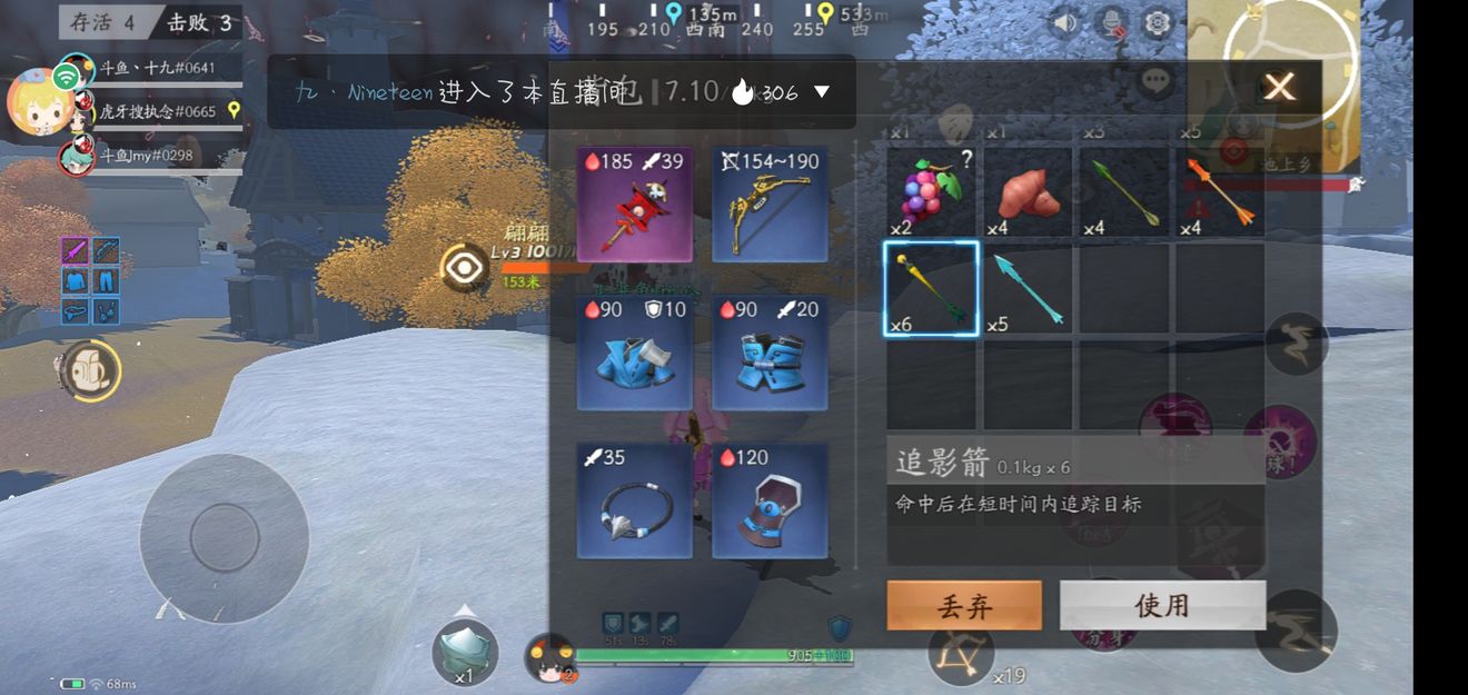 前两种弓是在风云岛的的房子里面随处可见的,紫弓可以在各种箱子里面摸索出来,或者浅语的锦囊里面有几率爆,橙弓也可以在各种箱子里面摸索出来,概率略低,天选黄金蛋里面也有几率爆哟,或者你去锤大魔王,也会几率。欧皇体质能落地橙鸭,橙弓的特技是会使普通的细木箭附加追踪效果。