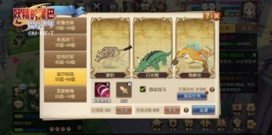 妖精的尾巴魔导少年是一款回合制游戏,目前这样的游戏的好处就是除了时间限制以外,没有疲劳这一说,所以玩家升级的快慢,全看自己对游戏的理解,下面给大家详细说说快速升级的攻略。妖精的尾巴魔导少年手游升级攻略勤做主线 一个不丢主线任务是游戏中获取经验的主要途径之一如果想要等级不低于人,主线任务必须要及时完成。虽然主线剧情单次经验并不是很多,但是它的次数很多,可以积少成多。而且主线中还能获得稀有道具,所以建议有主线剧情和支线剧情时都先去做一下。