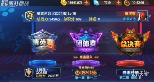团体赛要动员全社团成员消耗金币为社团鼓舞,提升实力,金币鼓舞一定要全部点满,同时督促社团成员努力提升实力,实力强大才能拿到好名次,奖励自然也就越好。由于可以上阵2队格斗家,每个队伍的格斗家战力最好平均分配下,不然最强队伍遇到比你更强的就gameover了,战力偏低的队伍为1队,战力高的为2队,如果可以一个暴走八神庵四魂阵容和一个火焰流阵容那就再好不过了。
