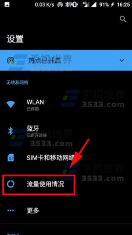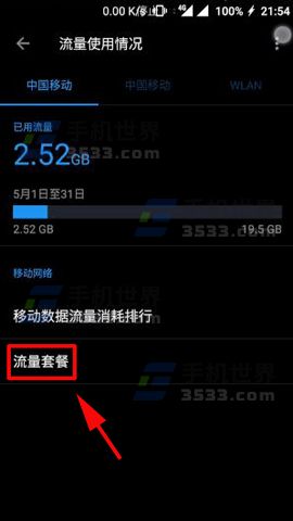 1)我们先打开设置界面点击进入【流量使用情况】功能,进去后再点击进入【流量套餐】。(如下图)