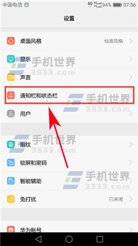 1)打开手机设置,接着点击【通知栏和状态栏】选项,进入后点击【通知中心】。(如下图)
