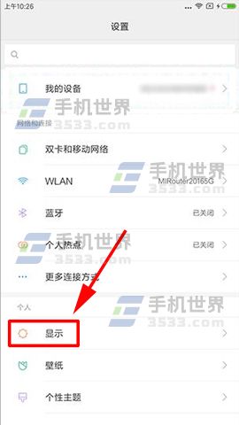 1)首先我们打开手机的【设置】,进入设置菜单后继续点击【显示】选项。(如下图)