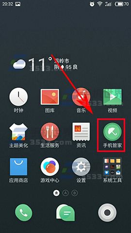 1)打开手机自带的【手机管家】应用,进入手机管家后点击打开【流量管理】。(如下图)