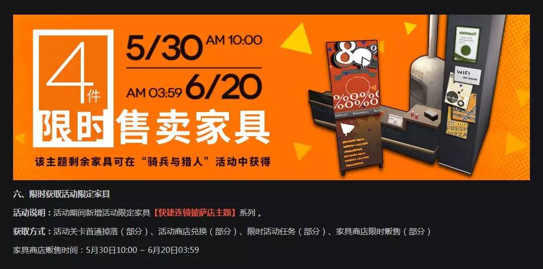 活动限定家具。游戏内已知家具目前完整一套在12到17件不等,本期限定家具仅有4件为限时售卖,其余则在活动中获取。请把握住机会。