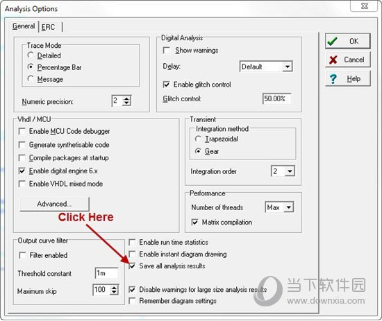 2、绘制需要仿真的电路原理图。通过示波器的探头功能或者信号选择功能能够显示任意电路节点信号。设置方法: Analysis ---> Options... Save all analysis option.