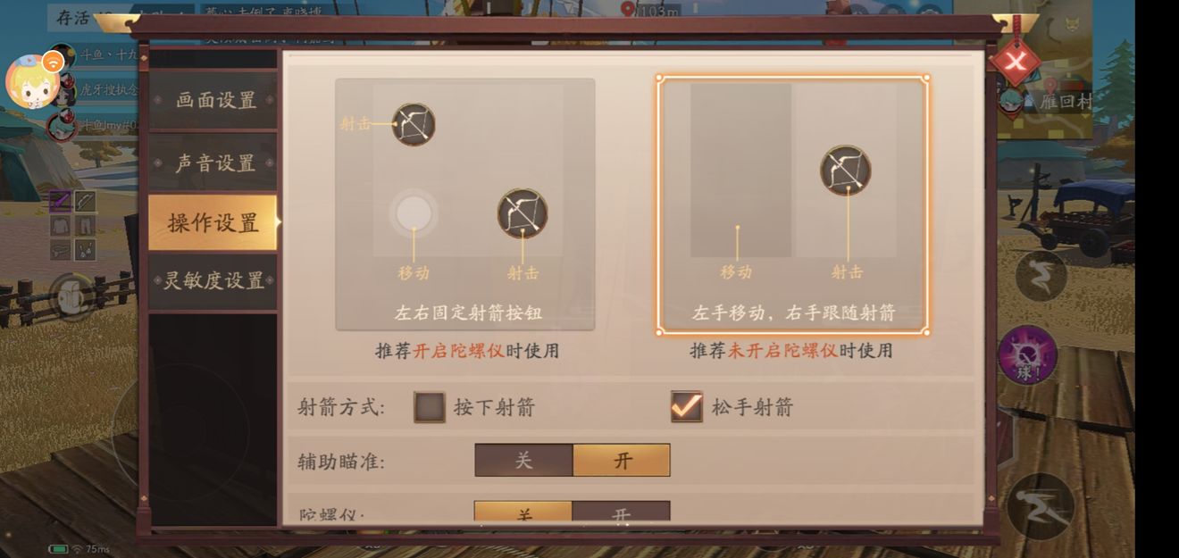 弓箭的操作方式分为两种,射箭方式分为两种。个人建议,四指操作的玩家可以使用第一种操作方式+按下射箭,萌新玩家or不习惯使用弓箭的玩家使用第二种操作方式+松手射箭。