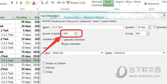 5、需要设置任务进度为“0%”,“25%”,“50%”,“75%”,“100%”之外的数值,可以单击任务条目,在弹开的对话框中输入具体的数值,例如20。
