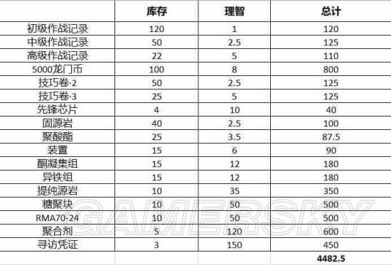 去除家具和最后的垃圾龙门币,还剩4482.5理智的东西。