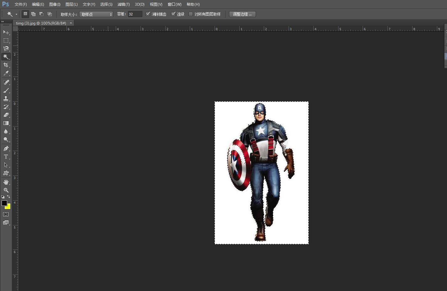 2、再用鼠标左键点击图片,然后就可以得到背景的选区