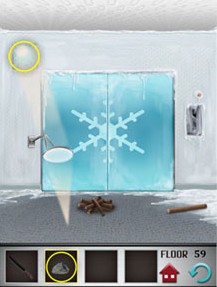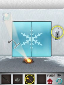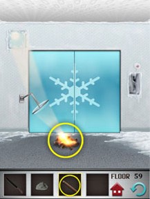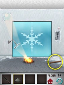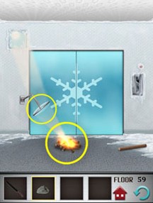 首先拾取电梯左侧的一块石头,用石头将左上角挡住阳光的玻璃打碎,点击放大镜,变换位置,让放大镜的焦点聚在电梯门口的火柴上,点击放大镜,变换位置,让放大镜的焦点聚在电梯门口的火柴上。,点击储物箱中的火柴,放在火堆上点燃。,拾取点燃的火柴,点击右侧被冰冻的电梯门开关。