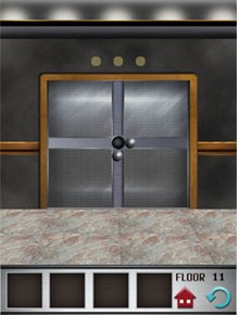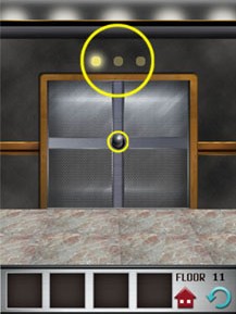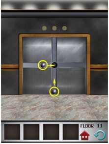 11关是依靠动力感应来操作的,电梯中间有个小孔,和两颗小球,玩家需要倾斜手机,将两个小球在小孔处重合,注意不能移动哦,保持几秒钟,等门上面的三个灯都亮起来,就能过关。