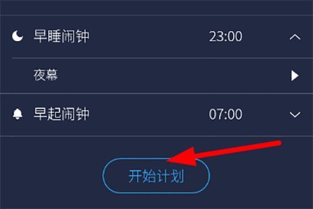 2、点击完闹钟按钮之后,我们就会进入到睡眠计划界面,在该界面,我们可以制定自己的,设置早睡闹钟与早起闹钟,合理规划自己的生活,最后点击开始计划即可实施;