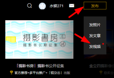 1、登录电脑端,点击“发布”,选择“发视频”。