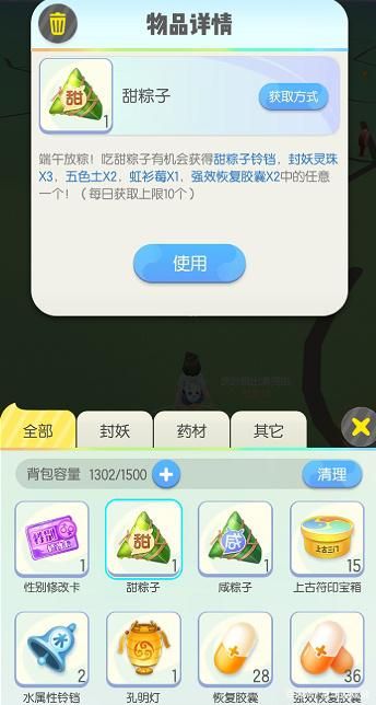 除了两种铃铛之中还有甜咸粽子两种不同的补给,玩家在活动期间只要捉妖就有概率额外掉落粽子(每日上限10个)。而取得的粽子在使用后这会让玩家获得一定的道具或者物资,其中就包括了上述的两款铃铛。