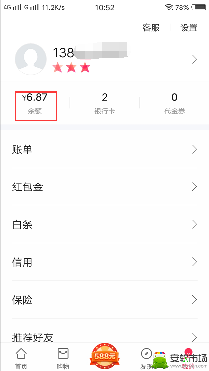 2、进入个人中心之后就可以看见自己的余额了,我们点击【余额】