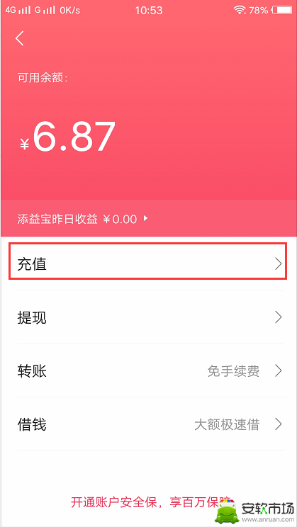 3、点击之后就可以到余额的页面了,之后我们就可以直接点击下方的【充值】