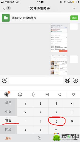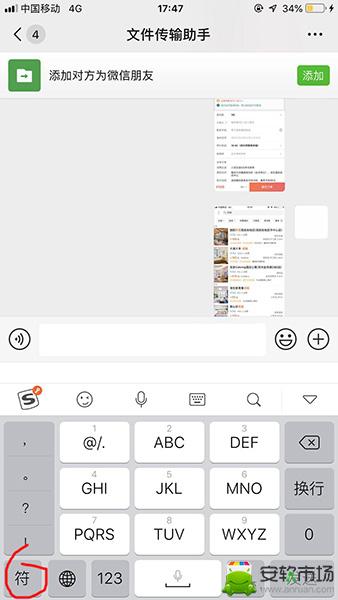 1、首先将手机的输入法切换到搜狗输入法,没有app的可以先下载好然后在直接使用,点击左下角的“符”字进行中英切换;