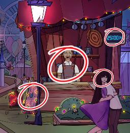 1、首先从商店的老板是【提线木偶】、门口广告牌【招聘屠夫夫】、拥抱的人只有【两人一头】、时间显示【25点】。