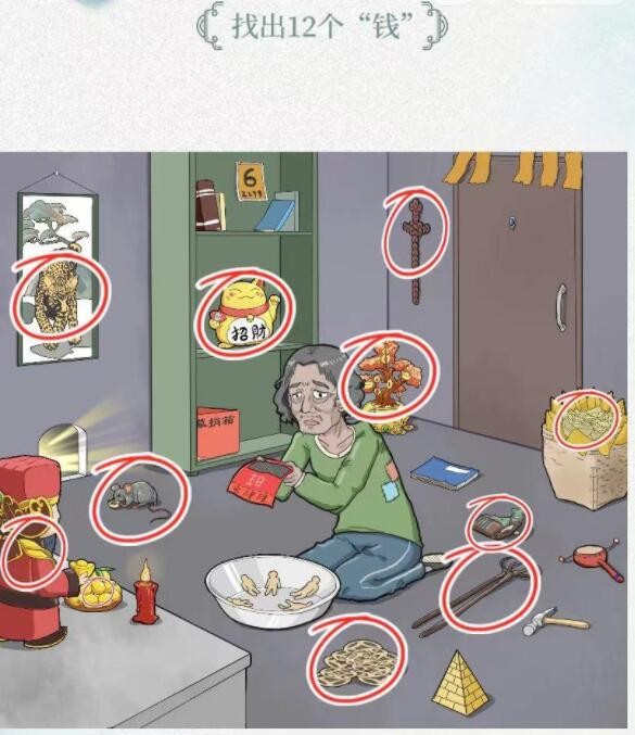 《文字脑洞》五鬼运财找出12处钱通关攻略