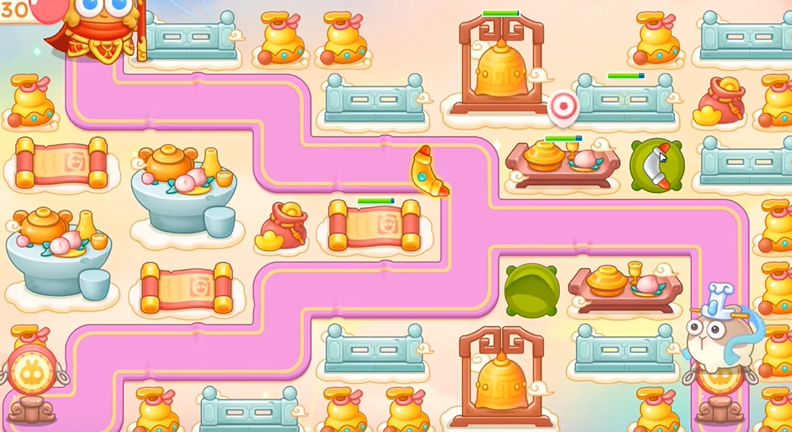 保卫萝卜4西游周赛2月10日的关卡已经更新了,在完成关卡后可以获得十分丰厚的奖励。下面就让小编为你详细讲解一下保卫萝卜4西游周赛2月10日的攻略,有需要的朋友们赶紧来看一下吧!保卫萝卜4周赛2.10攻略 1、建立一个二级元宝和一个一级多重箭,多重箭锁定葫芦,有金币了就升级元宝。2、葫芦打掉之后,在建立一个多重箭,继续清理障碍物,等到呆萌兔走到下图位置的时候,取消锁定,继续在下面建造一个元宝,锁定钱