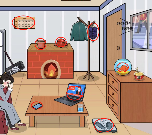 爆梗找茬王是一款好玩的解谜游戏,玩家可以挑战不同的关卡,挖掘自己的脑力极限,不知道怎么过也不要紧,小编带来了压力山大这一关的攻略分享!爆梗找茬王压力山大攻略通关条件:帮大嫂消除焦虑1、点击手机,将里面的静音键拖动到外面,外面就安静了,点击电脑。2、用锤子把手机和电脑砸掉,将鱼缸里的鱼放生,将水杯的水倒入花盆里。3、长出鲜花,点击吊带、木鱼、行程表,这几个都可以降低大嫂的焦虑。 4、打开冰箱,可以看