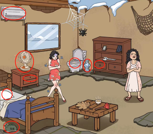 爆梗找茬王是一款好玩的解谜游戏,玩家可以挑战不同的关卡,挖掘自己的脑力极限,不知道怎么过也不要紧,小编带来了还房租这一关的攻略分享!爆梗找茬王还房租攻略通关条件:找出值钱的东西抵房租。1、墙上的坏空调,电风扇,床头柜里有首饰。2、枕头下面有孙子兵法,用马桶搋子疏通马桶会出现地契。3、床边上有清朝的夜壶,马桶边上的青花瓷。4、柜子抽屉打开有盗版的鞋子。 5、用扳手把箱子砸开,里面有82年的可乐。6、