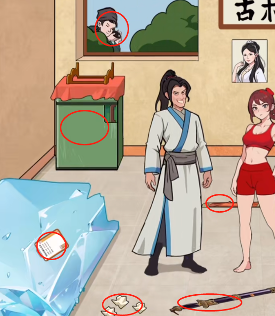 爆梗找茬王是一款好玩的解谜游戏,玩家可以挑战不同的关卡,挖掘自己的脑力极限,不知道怎么过也不要紧,小编带来了神雕侠侣这一关的攻略分享!爆梗找茬王神雕侠侣攻略通关条件:在师傅回来之前收拾好房间1、把床上的衣服给杨过穿好,然后把剑都放在剑架上,点击外面偷拍的人把照片删掉。2、地上的纸团扔到窗外,用冰箱里的冷饮把冰床修复好,床上的名单擦掉用笔重新改。 3、把地上的湿衣服挂在衣架上,把桌上的饭菜给他们吃。