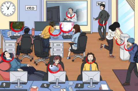 爆梗找茬王也是一款好玩的解谜游戏,玩家可以挑战不同的关卡,挖掘自己的脑力极限,不知道怎么过也不要紧,小编带来了摸鱼大神这一关的攻略分享!爆梗找茬王摸鱼大神攻略通关条件:找出十位摸鱼大神。1、老板在打游戏,边上一个男同事带薪如厕,女同事在接水。2、边上的女生在聊天,左边的在摸鱼,左边的戴着耳机打游戏。3、一个男人躺在按摩椅上按摩,边上的小姐姐真的在抱着咸鱼,右边的在睡觉。4、门口还有一个刚来的人,不