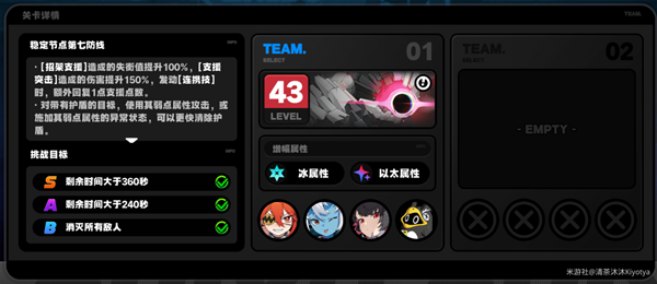 绝区零的地图广阔而复杂,隐藏着许多宝藏和秘密。这些宝藏和秘密不仅能为你带来丰厚的奖励,还可能让你发现新的游戏内容和玩法。本攻略将为你提供绝区零防卫战第六层怎么过的详细攻略指南,帮助你发现隐藏的宝藏和秘密,让你的冒险之旅更加精彩纷呈。《绝区零》防卫战第六层通关攻略1、增幅物理和电属性,同时提供了基于连携技的一系列增幅。2、这一关的最终boss是卫士,电弱但有火和以太属性抗性。3、同时难度相比前一关又