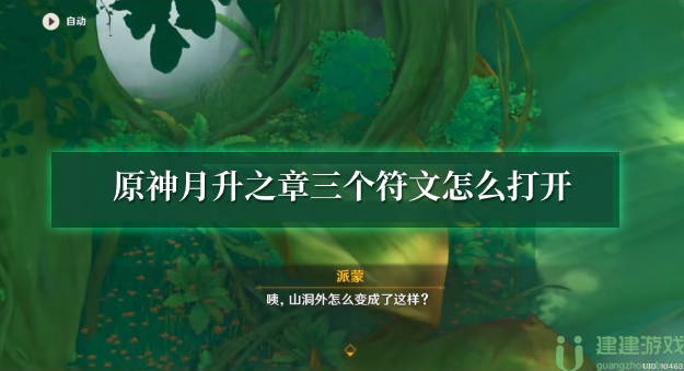 原神月升之章三个符文在哪里呢?该任务中有部分的玩家表示没有找到这三个符文的位置点,通过寻找完成三个符文的位置才能开启一个更多的全新任务,下面来看看详细的位置吧!希望帮助大家! 原神月升之章三个符文怎么打开前置任务: 完成【苦舍桓】开辟通路、探索山洞任务。任务过程: 1、参与苦舍桓开辟道路时,会来到茸覃窟位置,在进入到洞口中,一直往前走。 2、探索山洞的同时,会在墙壁上看见一串符文,靠近它开启任务“