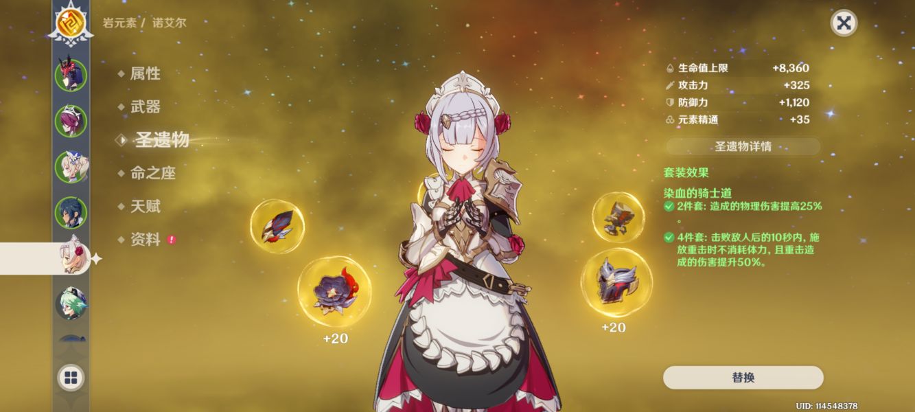 原神手游中诺艾尔作为这次3.2版本池子中上线的四星角色,那么她应该怎么搭配合适的圣遗物呢?关于这个小编已经帮大家准备好了相关内容,希望可以帮助到大家,快来和小编一起来看看吧。 原神诺艾尔圣遗物推荐推荐一:华馆4件套 华馆梦醒形骸记【5星】 推荐二:角斗4件套 量斗士的留恋【5星】 推荐三:逆飞4件套 夏祭之花【5星】 提示: 1、也可以用二加二,如二磐岩加二角斗、二华馆二角斗【这个只在圣遗物四件套