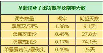 原神3.2版本即将更新上线,那么这次版本更新之后圣遗物掉率会是多少呢?不要着急,接下来小编就给大家带来这方面的详细内容,感兴趣的小伙伴们可千万不要错过了哦。原神3.2圣遗物掉落概率一览:一、圣遗物主词条掉落概率关于圣遗物各个主词条和副词条的出货概率,跟圣遗物5个位置有关,其中生之花的主词条必定是固定生命值,死之羽主词条必定是固定攻击力,这2个部位就没有什么好说的。而剩下的时之沙、空之杯、理之冠这3