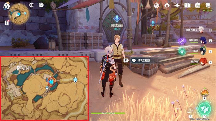 原神新版本上线,玩家更新后可以领取新的任务这里小编带来的是原神循着足印寻找考古队的踪迹任务怎么完成的方法,感兴趣的小伙伴不要错过,赶快来看一下吧!原神循着足印寻找考古队的踪迹任务怎么完成 图文攻略:1、首先来到【阿如村】的下图位置,然后找到【博尼法兹】和他对话,接取任务开启【黄金梦乡】。2、然后打开地图传送到下图所示位置,点击【七天神像-草】传送过去。3、接下来转动画面看到【东南】方向,有一座【石