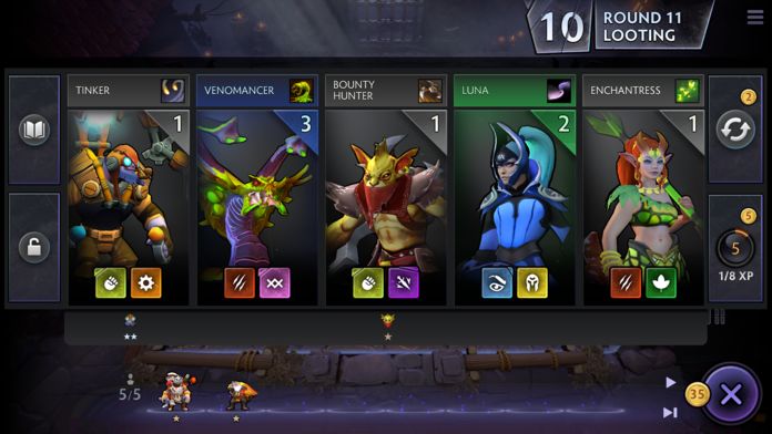 刀塔霸业游戏介绍:刀塔霸业是一款典型的回合制战棋类游戏,如果更细致的可被划分为自走棋类游戏。玩家通过在线匹配方式,与其余七名玩家共同组成一局游戏,通过每个回合系统按照规则发放的金币来购买棋子,并放置在8*8的棋盘的下半部中,在战斗阶段随机匹配一名其他玩家的棋子