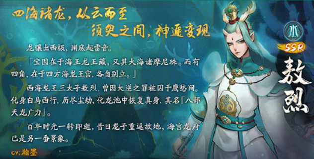 神都夜行录是一款人气火爆游戏,神都夜行录新联动妖灵敖烈上线,敖烈作为新的SSR,技能属性都不错。那么神都夜行录敖烈怎么样?今天小编就给大家带来神都夜行录联动SSR敖烈全等级技能属性一览,感兴趣的小伙伴快来看看吧。神都夜行录敖烈技能是什么?SSR妖灵「敖烈」四海诸龙,从云而至 须臾之间,神通变现龙嚷出西极,渊底起雷音。「宝固在于海王龙王藏, 又其大海诸摩尼珠。而有四角,在于四方海龙王宫,各自别立。」