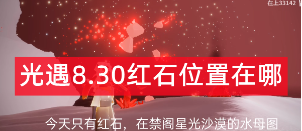 光遇手游中红石碎片作为破晓季新增的玩法内容,那么8月30日的红石位置在哪里呢?很多小伙伴对这方面的内容还不是很了解,为此,小编特地为大家整理了这些内容,一起往下看看吧! 光遇8.30红石位置在哪1、地图位置:禁阁 2、具体位置:星光沙漠的水母图3、坠落规律:偶数小时的08分到60分就会开始坠落,如2∶08~3:00,第九分钟就可以前去清理了。4、完成方法:玩家需要先烧花,然后会出现一个打坐点,打完