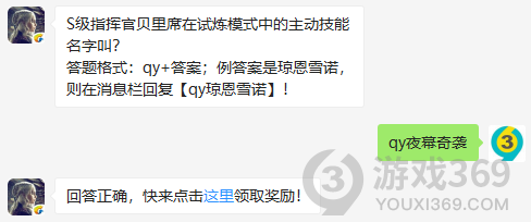 S级指挥官贝里席在试炼模式中的主动技能名字叫?答题格式:qy+答案,12月3日权力的游戏凛冬将至每日一题的答案是什么?不知道的领主们,进来看看正确答案吧!回答正确即可领取小蓝为大家准备的丰厚奖励了权力的游戏凛冬将至12月3日问题:S级指挥官贝里席在试炼模式中的