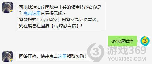 可以快速治疗医院中士兵的领主技能名称是?答题格式:qy+答案,11月16日权力的游戏凛冬将至每日一题的答案是什么?不知道的领主们,进来看看正确答案吧!回答正确即可领取小蓝为大家准备的丰厚奖励了权力的游戏凛冬将至11月16日问题:可以快速治疗医院中士兵的领主技能