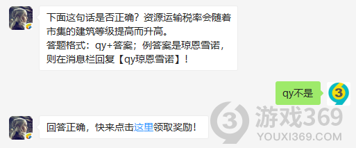 下面这句话是否正确?资源运输税率会随着市集的建筑等级提高而升高。答题格式:qy+答案,10月29日权力的游戏凛冬将至每日一题的答案是什么?不知道的领主们,进来看看正确答案吧!回答正确即可领取小蓝为大家准备的丰厚奖励了权力的游戏凛冬将至10月29日问题:下面这句