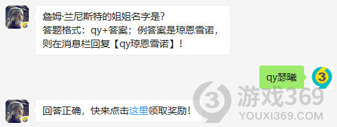 詹姆兰尼斯特的姐姐名字是?答题格式:qy+答案,10月30日权力的游戏凛冬将至每日一题的答案是什么?不知道的领主们,进来看看正确答案吧!回答正确即可领取小蓝为大家准备的丰厚奖励了权力的游戏凛冬将至10月30日问题:詹姆兰尼斯特的姐姐名字是?答案:qy瑟曦这就是