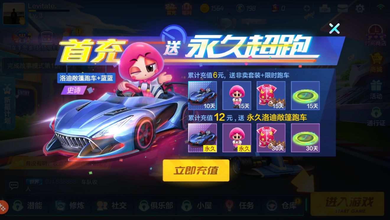 跑跑卡丁车手游首充礼包哪个好?在线上竞技中,充值可拿到超跑。小编带来对比详情,更好进行充值!首充性价比与洛迪跑车解析这次的首充分为两个类型,一个是6元另一个是12元,先来带大家看一下分别有什么东西。6元送:史诗洛迪敞篷跑车(10天)、史诗角色蓝蓝(10天)、星