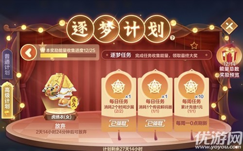 跑跑卡丁车虎绣衣如何获取?想必很多的小伙伴们都不是很清楚,那么接下来,就跟随游戏爱好者小编一起来看一下《跑跑卡丁车虎绣衣获取方法介绍》吧!感兴趣的小伙伴一定不要错过哦!跑跑卡丁车虎绣衣获取方法介绍终于上新了,今天给大家介绍的虎绣衣套装是跑跑卡丁车手游中新出的一款时装。单单从外观来说,服装采用了杏子黄和白色搭配,风格上借鉴了民国服饰,老虎头的背包超级萌哦!参与逐梦计划的高级计划,完成任务收集能量即可