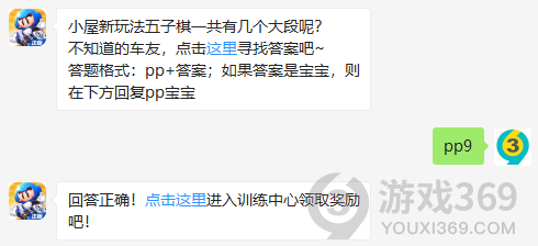 小屋新玩法五子棋一共有几个大段呢?答题格式:pp+答案,12月2日跑跑卡丁车每日一题的答案是什么?不知道的车主宝宝们,进来看看正确答案吧!回答正确即可领取皮蛋为大家准备的丰厚奖励了跑跑卡丁车12月2日问题:小屋新玩法五子棋一共有几个大段呢?答案:pp9这就是这